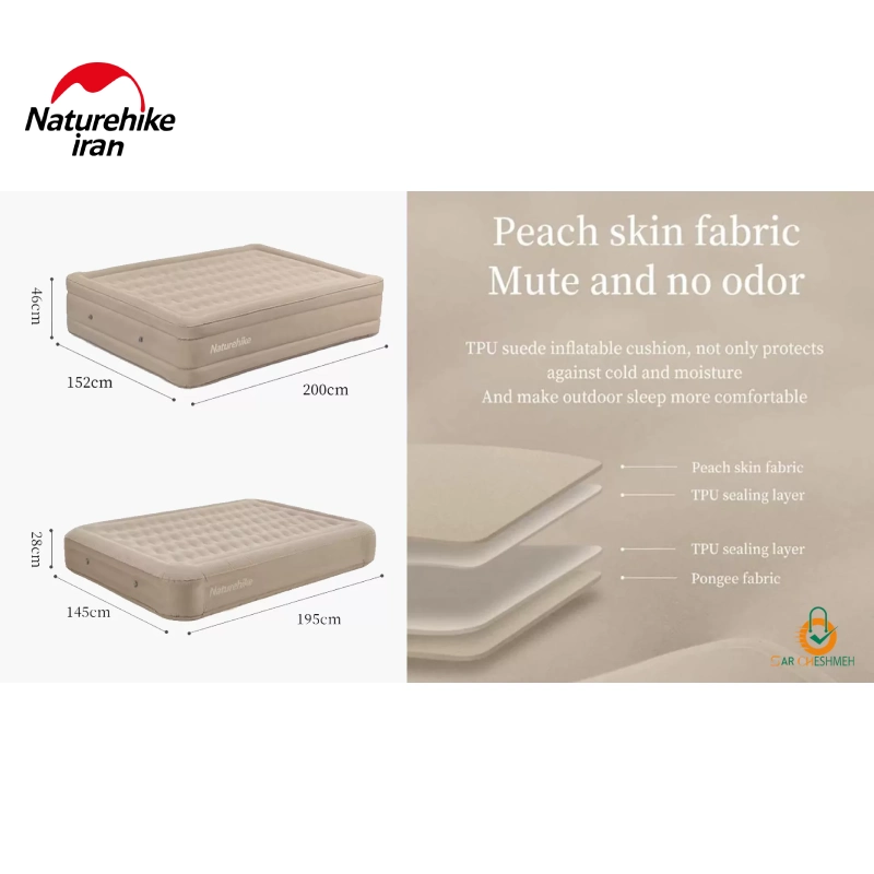 اگر اهل سفر، طبیعتگردی یا کمپینگ هستی و دنبال خوابی راحت مثل تخت خانه در دل طبیعت میگردی، تشک بادی نیچرهایک مدل NH21FCD08 دقیقاً همون چیزیه که باید داشته باشی. این تشک با طراحی فنری داخلی و رویه نرم “پوست هلو”، هم حس لطافت فوقالعادهای داره و هم از ستون فقراتت پشتیبانی کامل میکنه. مقاومت در برابر رطوبت و نشتی هوا باعث میشه حتی در کمپهای طولانی و هوای مرطوب هم خیالت راحت باشه. وزن سبک ۴.۶ کیلوگرمی و ابعاد جمعوجور، حملش رو برای سفرهای جادهای یا طبیعتگردی خیلی راحت میکنه. تحمل وزن ۱۵۰ کیلوگرم و ابعاد بزرگ ۲۰۰ در ۱۵۲ سانتیمتر، فضای کافی برای دو نفر بزرگسال فراهم میکنه. با NH21FCD08 میتونی در هر سفری خوابی راحت و آرام رو تجربه کنی — از دل جنگل و کویر گرفته تا ساحل دریا.