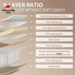 رویۀ تشک از الیاف پلیاستر نرم و مقاوم ساخته شده که علاوه بر لطافت و حس راحتی، مقاومت بالایی در برابر ساییدگی و رطوبت ارائه میدهد. هسته داخلی اسفنج با کشسانی بالا، وزن بدن را یکنواخت پخش میکند و فشار روی ستون فقرات و کمر را کاهش میدهد، بنابراین حتی بعد از یک روز طولانی گردش یا پیادهروی، خواب عمیق و آرام تجربه خواهید کرد.