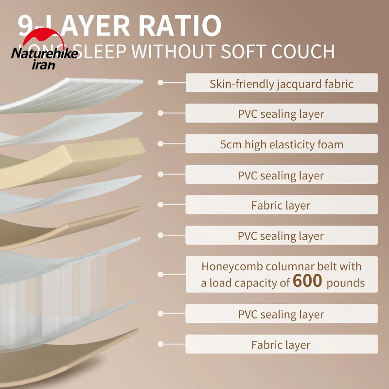- ویژگی: سبک، قابلباد کردن، ضدآب و ضدحساسیت، مناسب سفر و کمپینگ