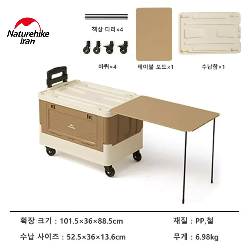 یکی از ویژگیهای متمایز این مدل، قابلیت تبدیل به میز پیکنیک یا میز کمپینگ است. تختهی پلاستیکی بالایی بهراحتی روی چهار پایهی تاشو نصب میشود و میز محکم و کاربردیای برای غذا خوردن، کار یا آمادهسازی لوازم در دل طبیعت فراهم میکند. پایهها درون محفظهی مخصوص جعبه نگهداری میشوند تا حمل و نظمدهی آسان باشد.
