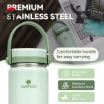 از لحاظ بهداشتی هم فلاسک سانتکو کاملاً امنه؛ چون فاقد BPA ساخته شده و هیچ ماده شیمیایی مضری وارد نوشیدنی شما نمیکنه. تمیز کردنش خیلی راحته و چون قطعات کمی داره، همیشه تمیز و بهداشتی میمونه.