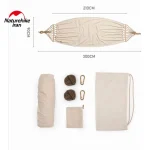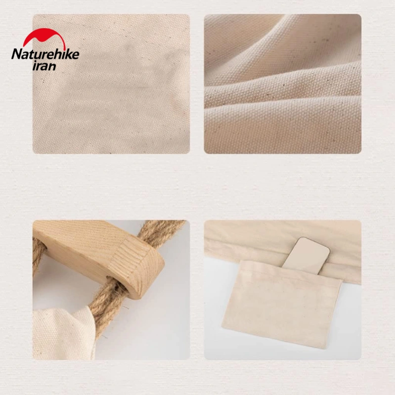 ننو نیچرهایک همراه با طنابهای نایلونی مقاوم با طول 3 متر و کارابینهای فلزی مستحکم عرضه میشود تا نصب آن بین دو درخت یا ستون در کمتر از چند دقیقه انجام شود. همچنین وجود روکش باران اختصاصی امکان استفاده در شرایط مرطوب یا بارانی را فراهم میسازد و باعث میشود این ننو در تمام فصول کاربردی باشد.