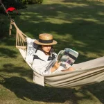 پارچهی اصلی این ننو از کتان برزنتی فشرده و مقاوم ساخته شده که علاوه بر دوام بالا، تهویهپذیری عالی دارد. این ویژگی باعث میشود حتی در هوای گرم تابستان، بدن شما در ننو عرق نکند و احساس خنکی و آرامش داشته باشید. مقاومت این پارچه در برابر سایش و پارگی باعث میشود در طول سفرهای متعدد یا استفادههای مکرر، دوام بالایی از خود نشان دهد.