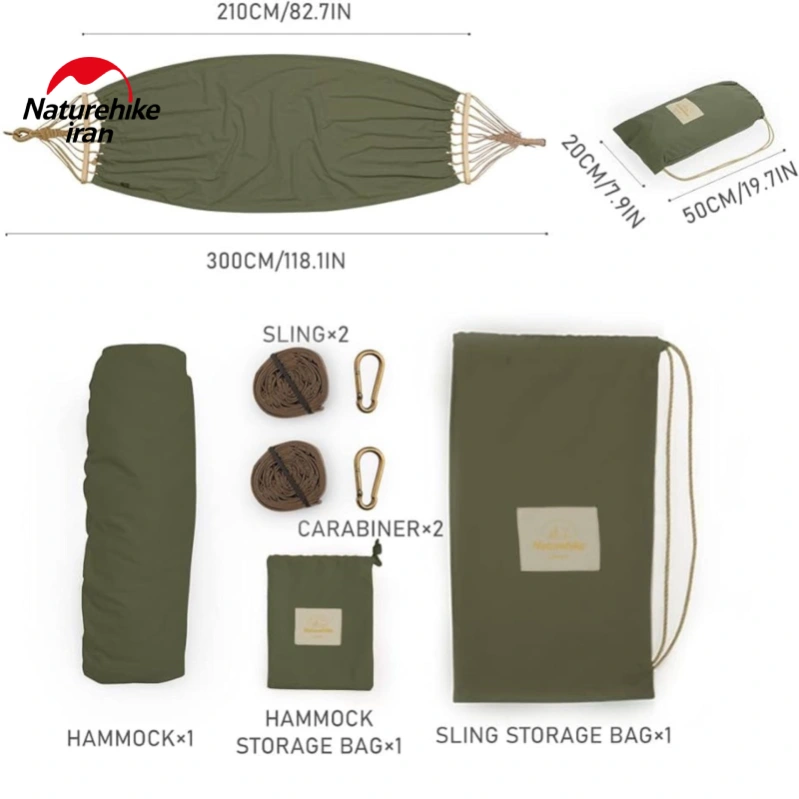 ابعاد باز ننو (300×90 سانتیمتر) فضای کافی برای استراحت کامل بدن را فراهم کرده و به لطف وزن سبک حدود 1.5 کیلوگرم و ابعاد بستهبندی کوچک (32×30×10 سانتیمتر)، بهسادگی در هر کولهپشتی جا میشود. همین ویژگی، آن را به انتخابی عالی برای طبیعتگردان، بکپکرها، کوهنوردان و آفرودرها تبدیل کرده است.